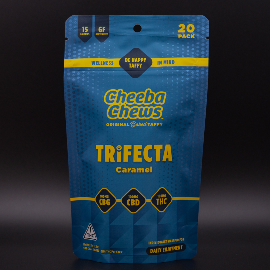 Cheeba Chews: Taffy | Carmel Trifecta 1:1:1 | 100mg THC : 100mg CBD : 100mg CBG | 20pk